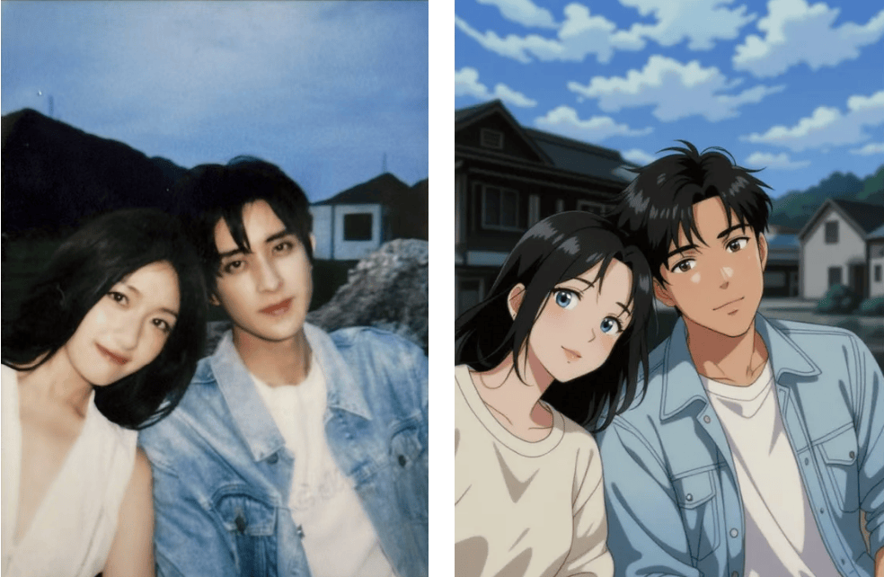 不消学复杂指令,看着本人手机里的糊图变成漫画配角,手机里就蹦出张动漫版。