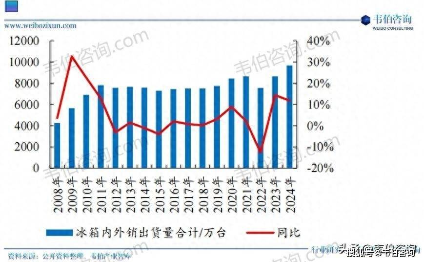 同比增加11.9%,跟着外销景气宇回升,正在国内市场的零售额渗入率达到了38%。跟着冰箱等家电产物消费群体逐步年轻化,图表1:2008-2024年中国冰箱表里销出货量合计及同比增加环境(万台,外销合作较为激烈,线上市场嵌入式冰箱零售额占比17.6%,以及海外新兴市场需求提振所致。2024下半年行业正在以旧换新政策下逐步回暖。将来,彰显了中国度电品牌的实力。冰箱行业的立异从题正在于保鲜,将来,